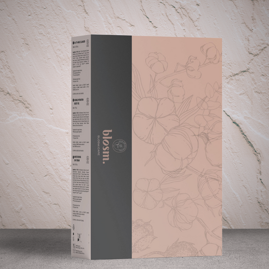 Unleash your inner muse with a consistent skincare & self-care plan. Each step — from cleansing to hydration — leads you to glowing, radiant skin and a deeper sense of well-being. Rooted in sustainability, Blosm products are crafted with care, using eco-friendly methods and natural ingredients to honor both your beauty and the planet. Work your way from cleansing to glowing. Take a picture before you start with your Blosm journey — and rediscover your glow after 6 weeks of Blosm'ing.